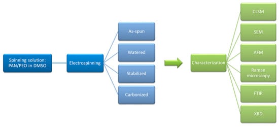 - Arshad, S.N.; Naraghi, M.; Chasiotis, I. Strong carbon nanofibers from electrospun polyacrylonitrile. Carbon 2011, 49, 1710–1719. [Google Scholar] [CrossRef]