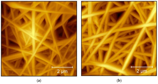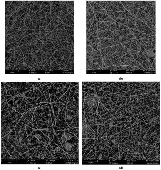The nanofiber diameters were measured on the SEM images using ImageJ (version 1.53e, 2021, National Institutes of Health, Bethesda, MD, USA), taking into account 100 arbitrarily chosen fibers per specimen.
