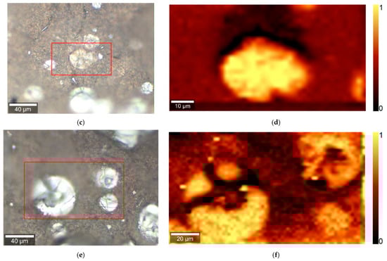 Raman microscopy was conducted utilizing a WITec alpha300 apyron (Ulm, Germany). The spectra were acquired using a 532 nm laser with a power output of 10 mW, an integration time of 3 s, and a 50× objective. Spectral data processing was performed using the software WITec Project SIX 6.2.10.147 (WITec, Ulm, Germany).