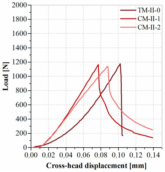 Figure 6 presents the representative load vs. cross-head displacement curves obtained from the flexural tests carried out on the series II specimens.