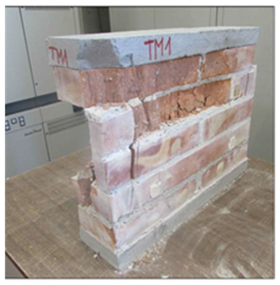 Typical failure mode observed in the compression tests on masonry walls (example of failure mode observed in specimen MW-TM-1).