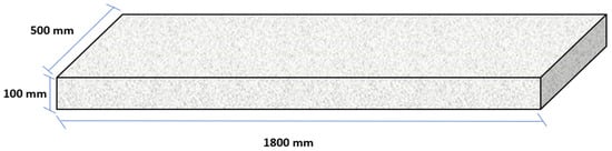 Nine one-way solid slabs were fabricated and left to harden for 28 days, during which they were covered by damp burlap for the initial 7 days, as shown in Figure 2. These slabs were all constructed with identical dimensions: a length of 1800 mm, a width of 500 mm, and a depth of 100 mm as shown in Figure 3. The reinforcement detail was Φ10 bar each 100 mm at long direction and Φ8 bar placed every 450 mm across the transverse direction, as shown in Figure 4.