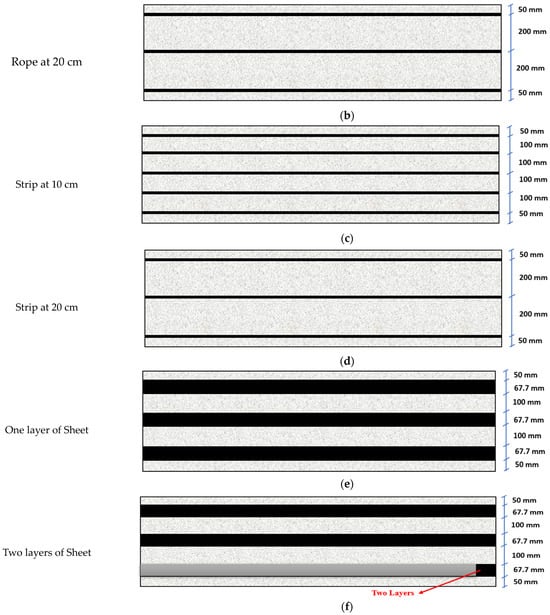Three different types of CFRP materials have been used in this investigation, namely CFRP rope, CFRP strip, and CFRP sheets, as shown in Figure 1. Table 1 presents different characteristics of CFRP material that have been mentioned, based on the manufacturer’s datasheet, namely Sika Company-Jordan (Amman, Jordan).