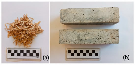 Wood fibres of beech species (Fagus sylvatica L.) (a) and the respective specimens of wood–cement mortars prepared for the static bending strength test (b).