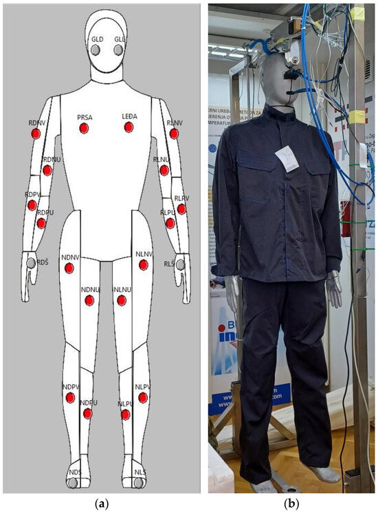 Thermal manikin: (a) Thermal manikin segments; (b) Measurement of thermal insulation on a thermal manikin.