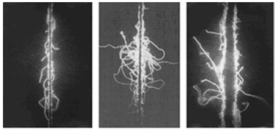 Hairiness is not a strictly separate property but rather a manifestation related to the characteristics of fibers, geometry, type of yarns, design, and transformation processes into planar structures. Extensive information is available about the hairiness of staple yarns. Many yarn-hairiness assessment procedures are based on a longitudinal view (see Figure 5) [,,].