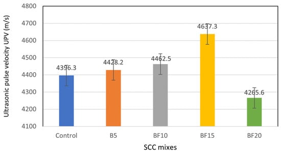 UPV test results for SCC mixtures with different basalt fiber contents.