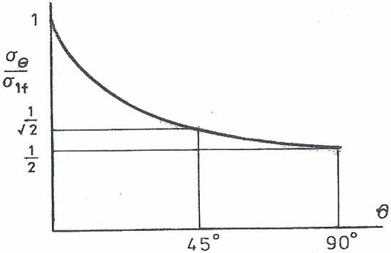 θ = 90°; (σ90°/σ2f)2 = 1, ∴ σ90° = σ2f, σ90°/σ1f = σ2f/σ1f