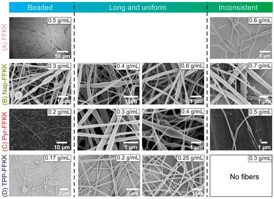 - Bucci, R.; Georgilis, E.; Bittner, A.M.; Gelmi, M.L.; Clerici, F. Peptide-Based Electrospun Fibers: Current Status and Emerging Developments. Nanomaterials 2021, 11, 1262. [Google Scholar] [CrossRef] [PubMed]