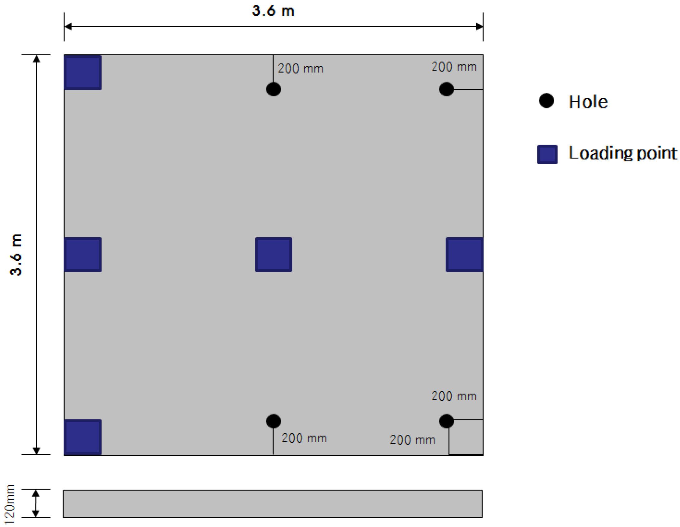 - The results from the analytical predictions correlated well with the experimental results for the conventional concrete SOG. In contrast, the analytical predictions significantly underestimated the performance of the HDFRCC SOG under various loading conditions. Furthermore, the predicted failure mode for HDFRCC at all three loading locations was punching shear failure. However, the experimental results indicated flexural failure under center loading and a combination of flexural and punching failure under edge and corner loadings.