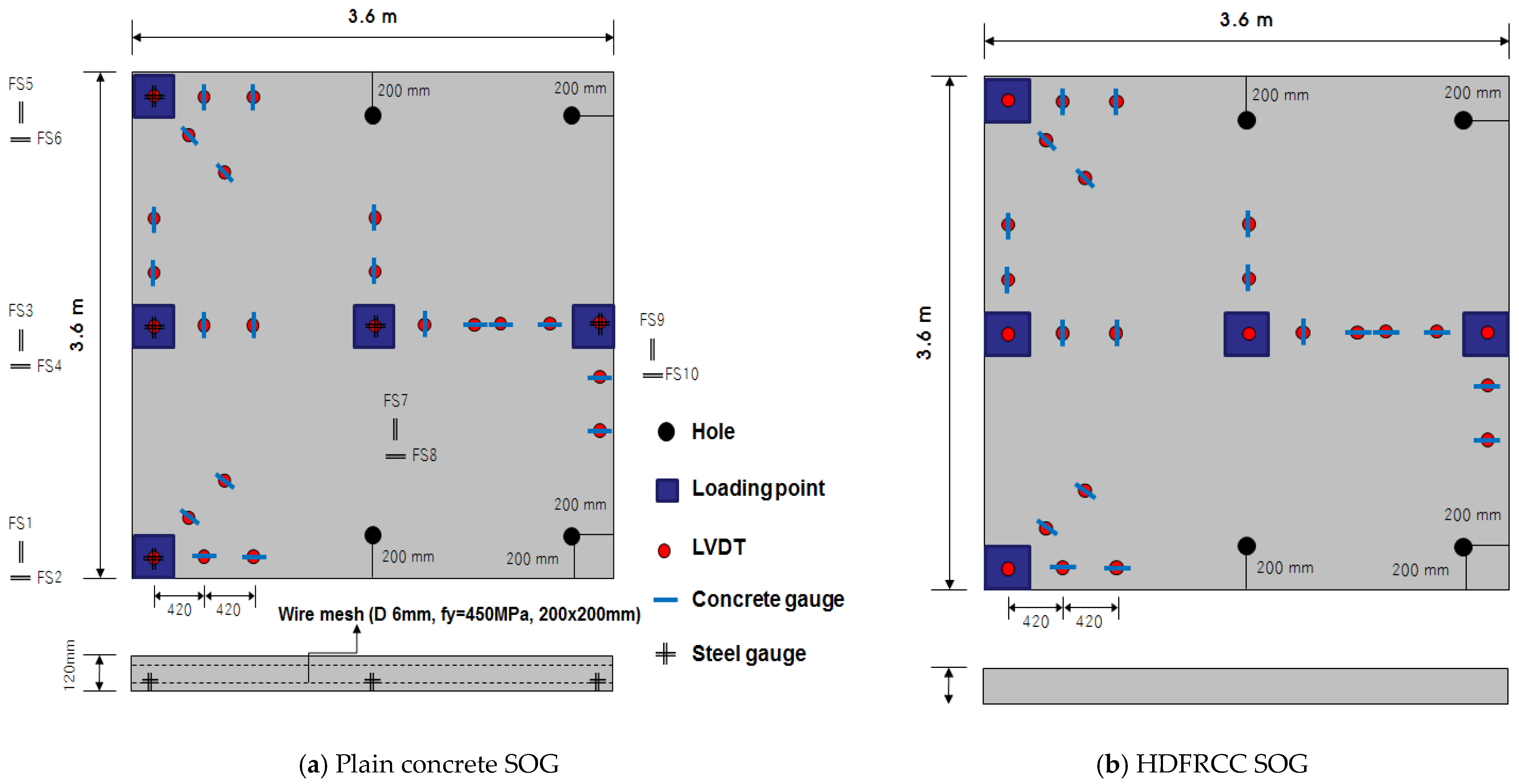 - Lee, C.; Lee, S.; Ko, K.; Yang, J.-M. Structural Performance of SFRC Slab-on-Grade Supported on Elastic Spring System. Mag. Concr. Res. 2017, 69, 757–771. [Google Scholar] [CrossRef]