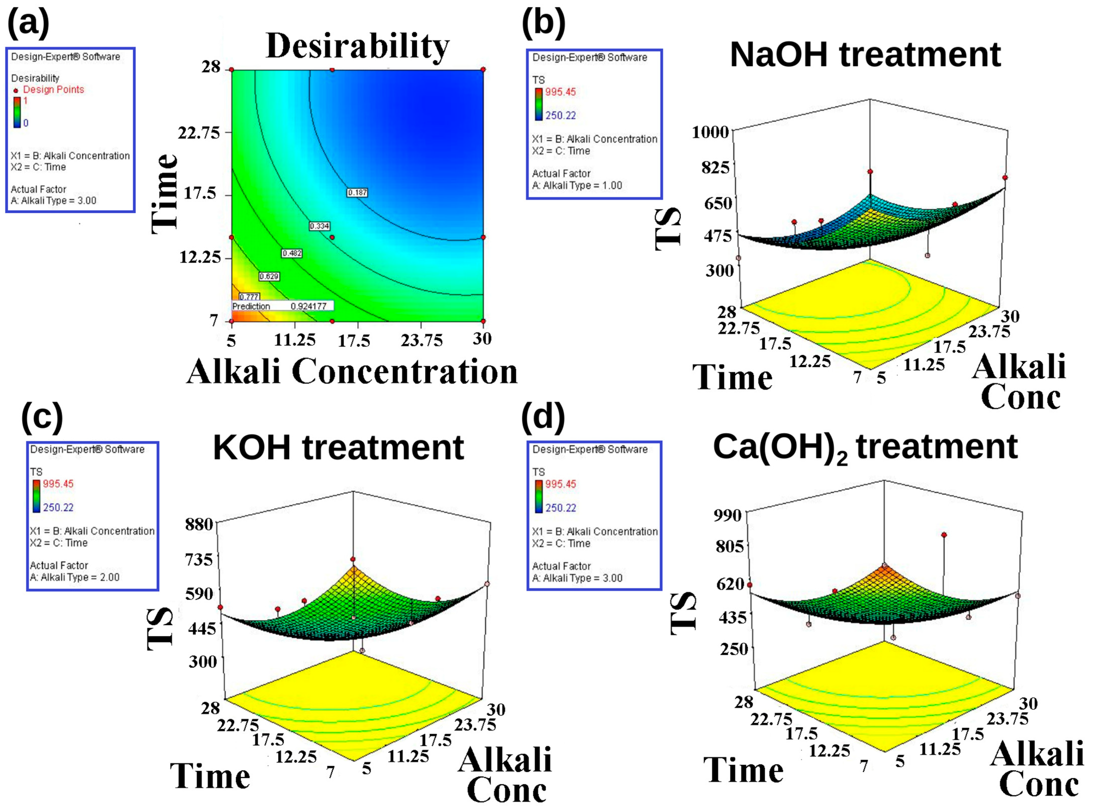 Number | Alkali Type | Alkali Concentration | Time | TS | Desirability |