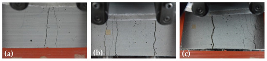 Fracture mode of U-WAF composites subjected to four-point bending test: (a) 2%, (b) 3% and (c) 4%.
