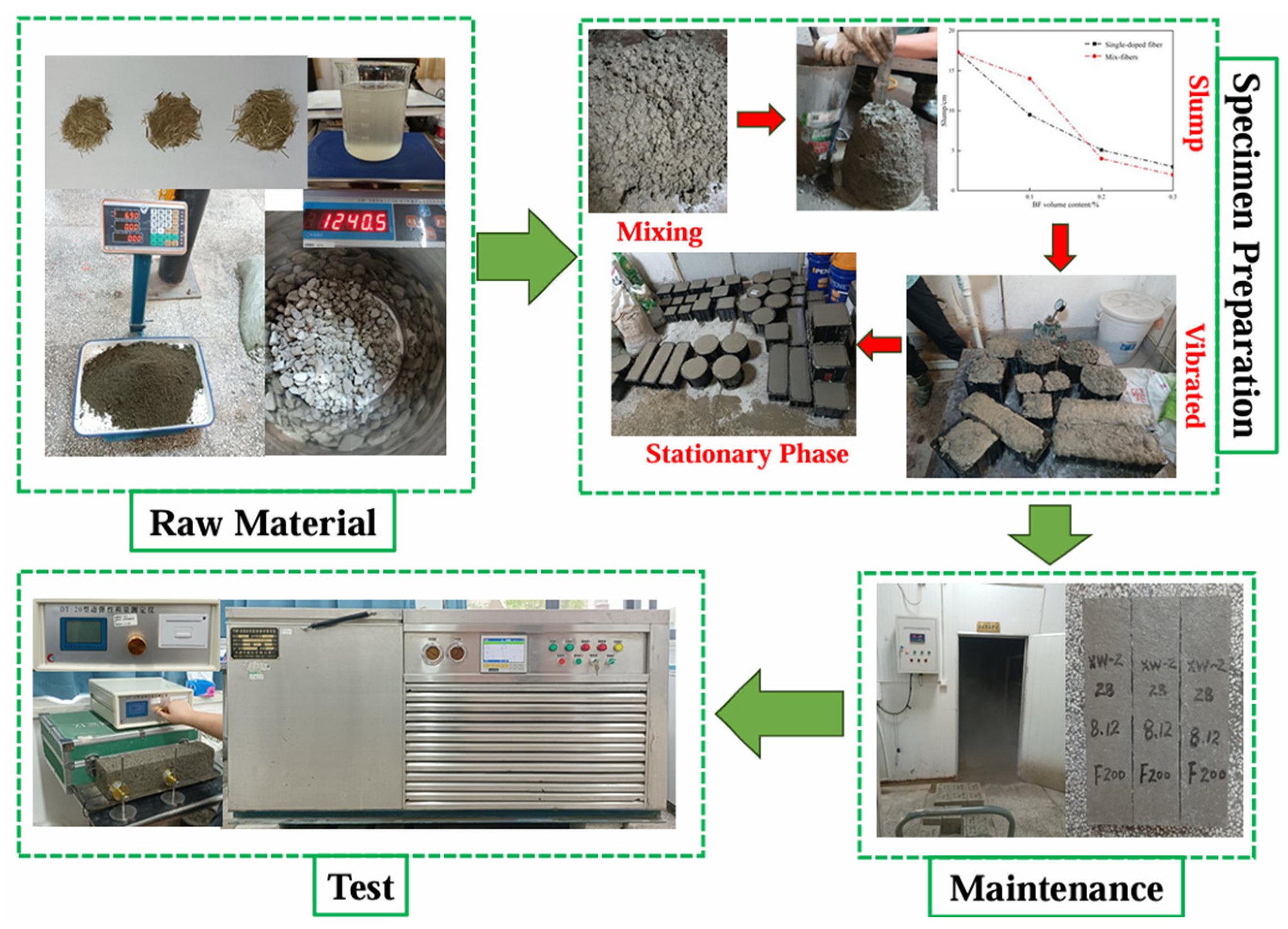 3]. Studies have demonstrated that various fibers, including basalt fiber, steel fiber, polypropylene fiber, carbon fiber, and glass fiber, exhibit favorable effects in enhancing concrete’s frost resistance [