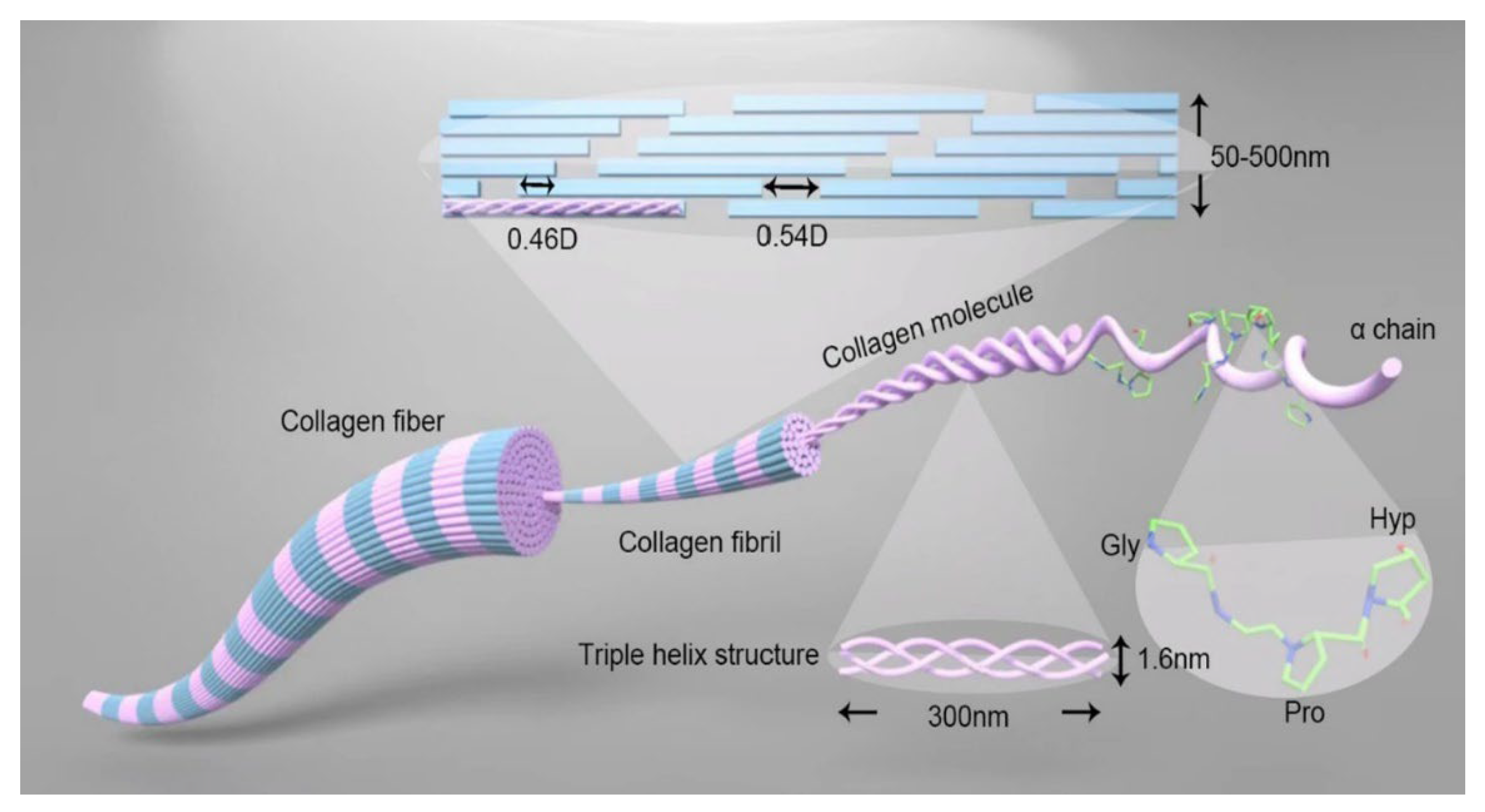 - Kadler, K.E.; Baldock, C.; Bella, J.; Boot-Handford, R.P. Collagens at a Glance. J. Cell Sci. 2007, 120, 1955–1958. [Google Scholar] [CrossRef]