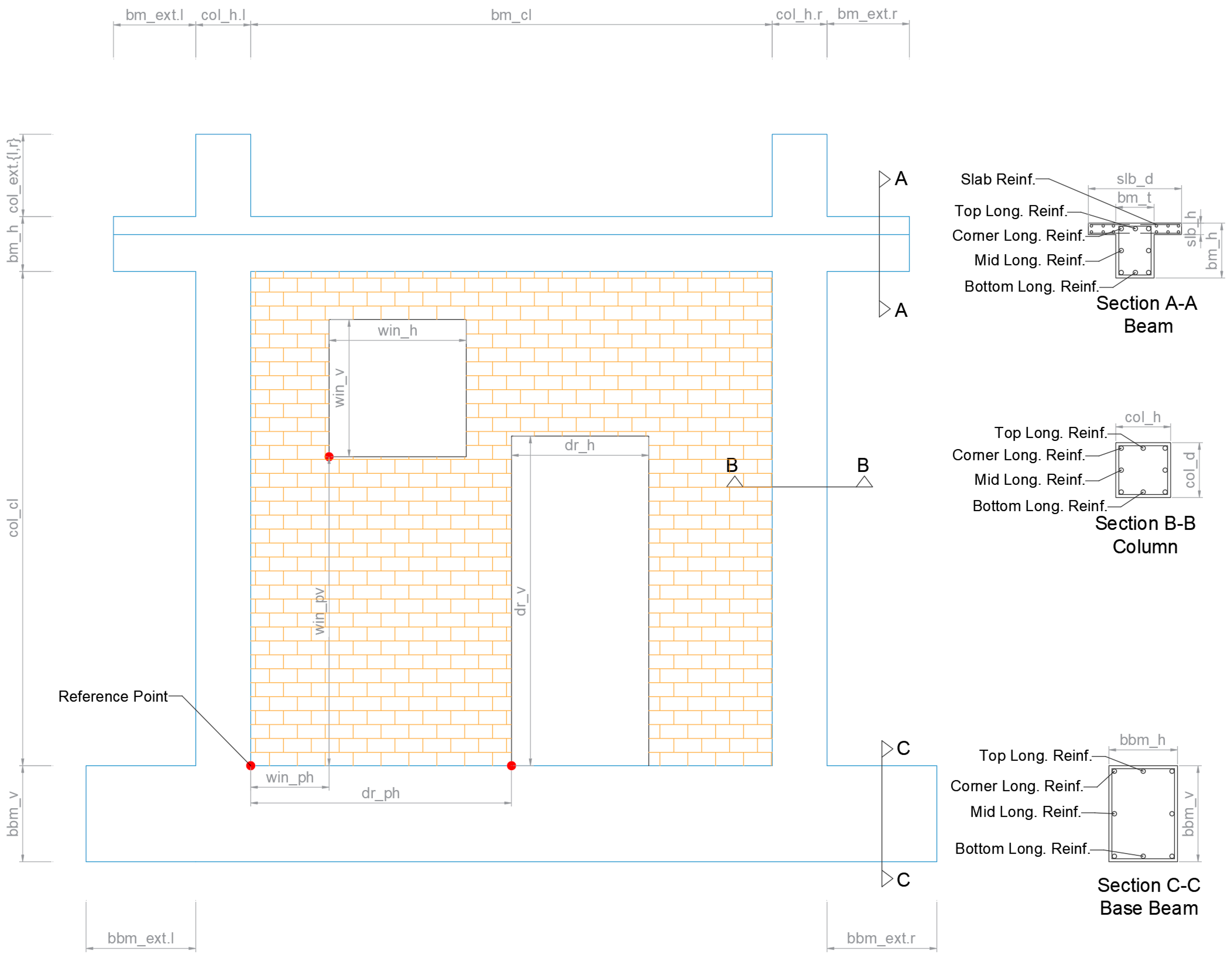 - “frm_h”—Height of the frame calculated from the top surface of the base beam to the top surface of the top beam (floor-to-floor height);