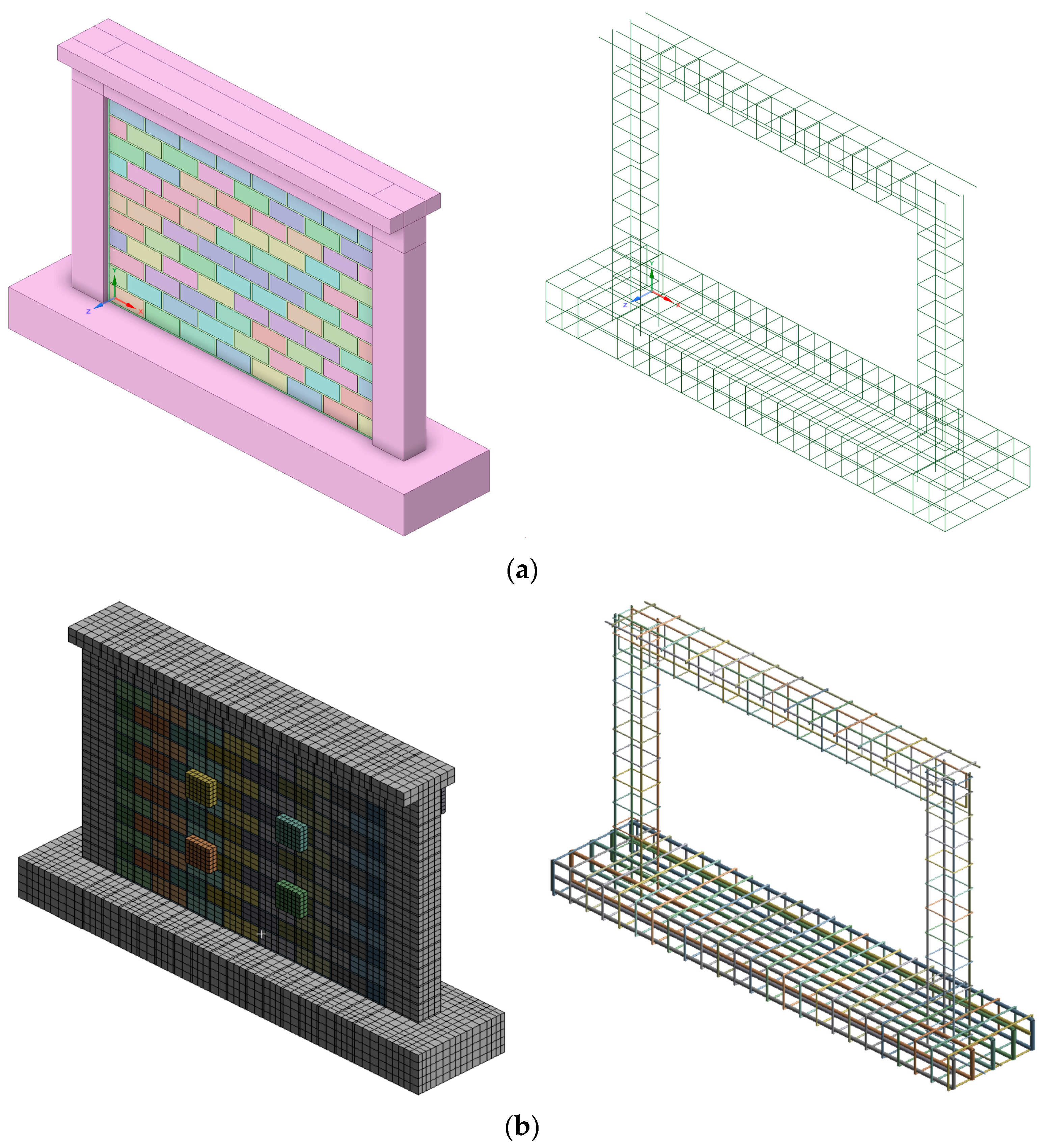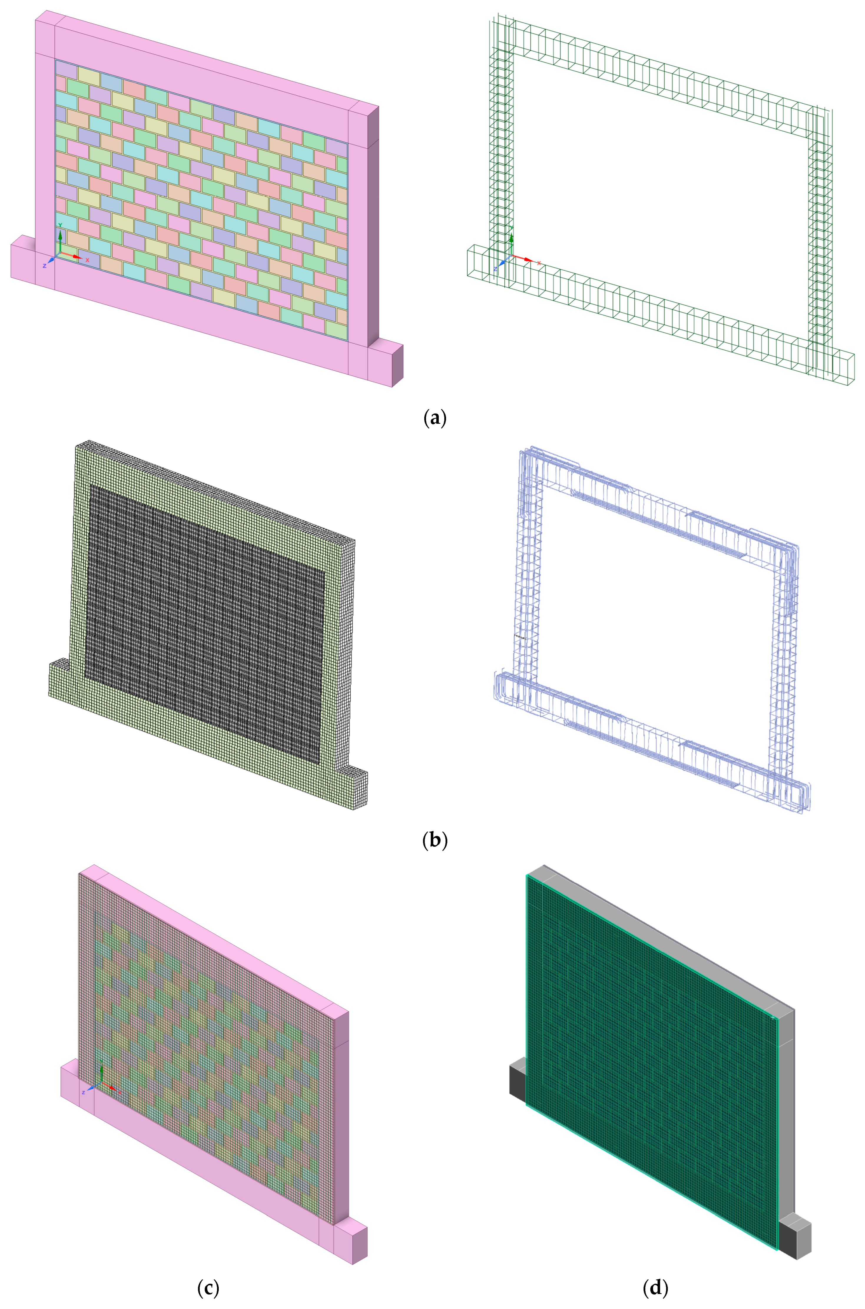 - Validation through three comprehensive examples demonstrates close agreement between numerical models and experimental results, accurately capturing initial stiffness, peak loading, and post-peak behavior across different loading conditions (out-of-plane, in-plane, and spatial configurations).