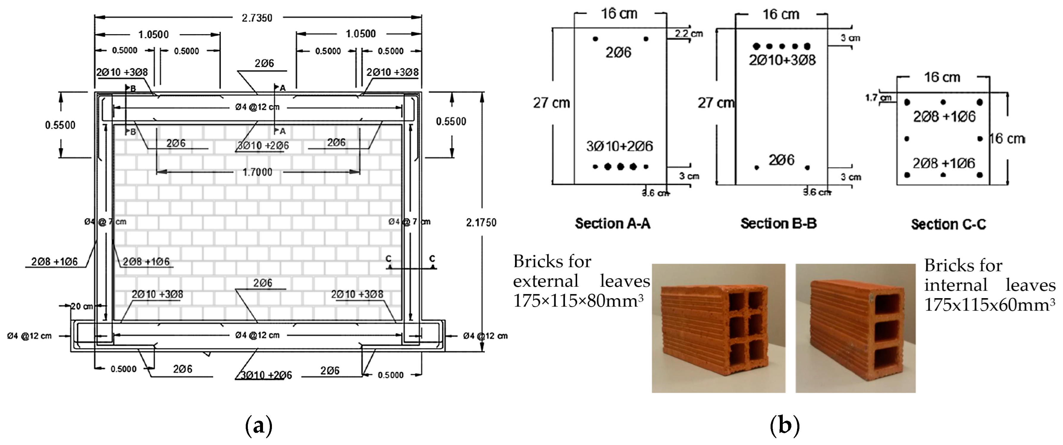 - Pires, F.; Bairrão, R.; Campos-Costal, A.; Coelhoi, E.; Rodrigues, J. Behavior of Masonry Infilled R/C Frames under Horizontal Loading. Experimental Results. In Proceedings of the 11th International Brick/Block Masonry Conference, Beijing, China, 14–16 October 1997; China Association for Engineering Construction Standardization: Beijing, China, 1997. [Google Scholar]