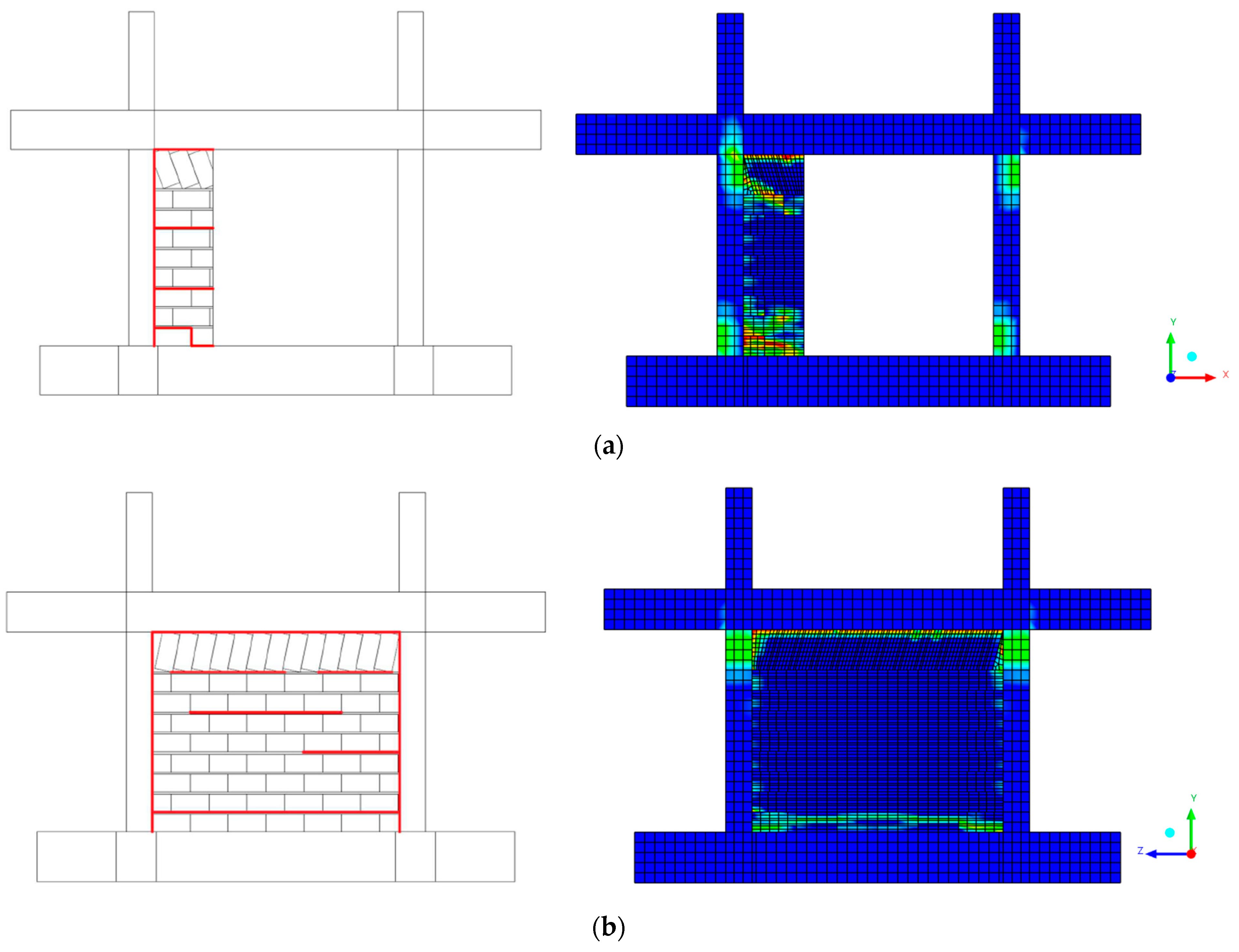 - Zhai, C.; Kong, J.; Wang, X.; Chen, Z. Experimental and Finite Element Analytical Investigation of Seismic Behavior of Full-Scale Masonry Infilled RC Frames. J. Earthq. Eng. 2016, 20, 1171–1198. [Google Scholar] [CrossRef]