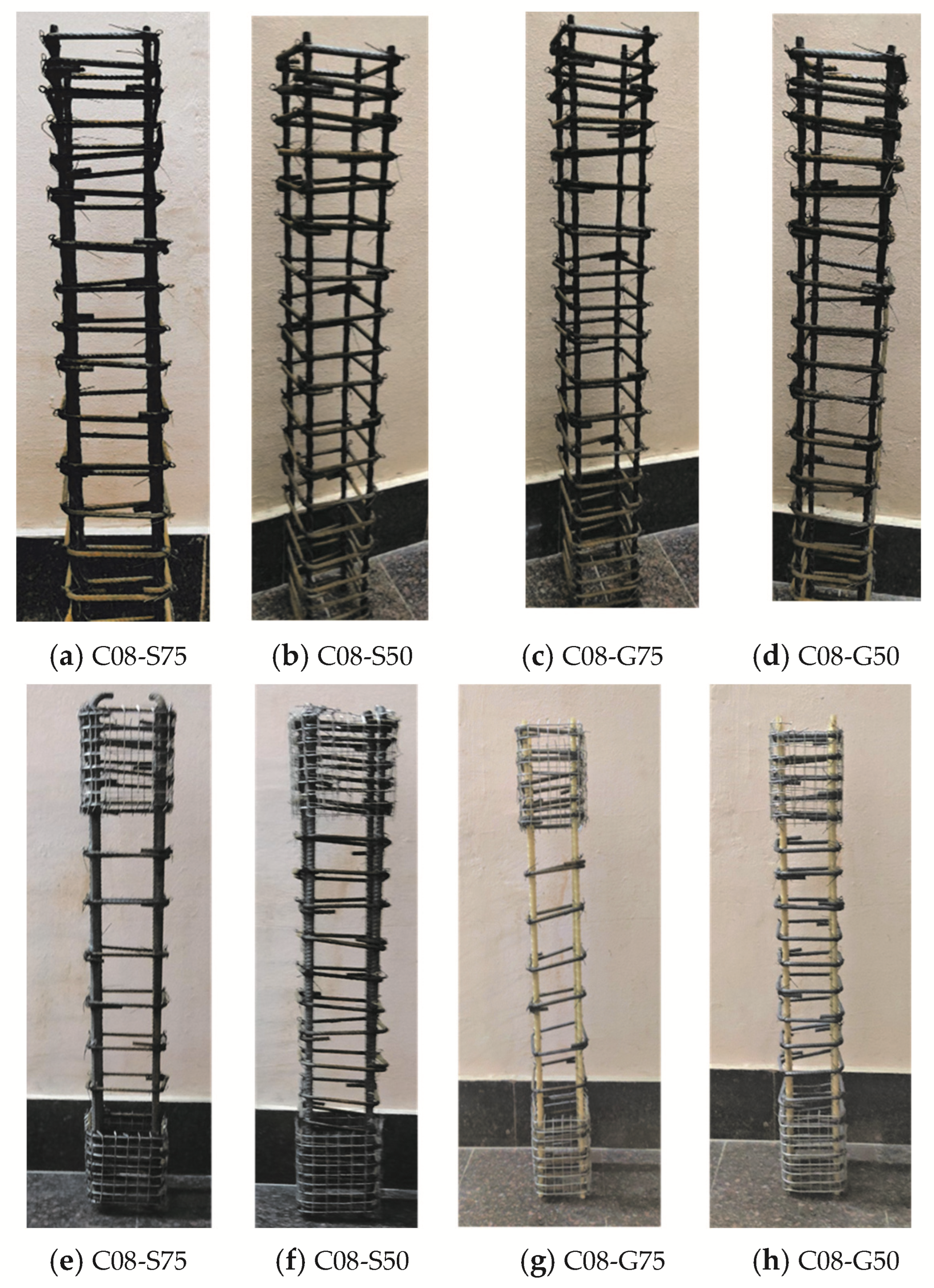 - Elkafrawy, M.; Gowrishankar, P.; Aswad, N.G.; Alashkar, A.; Khalil, A.; AlHamaydeh, M.; Hawileh, R. GFRP-Reinforced Concrete Columns: State-of-the-Art, Behavior, and Research Needs. Buildings 2024, 14, 3131. [Google Scholar] [CrossRef]