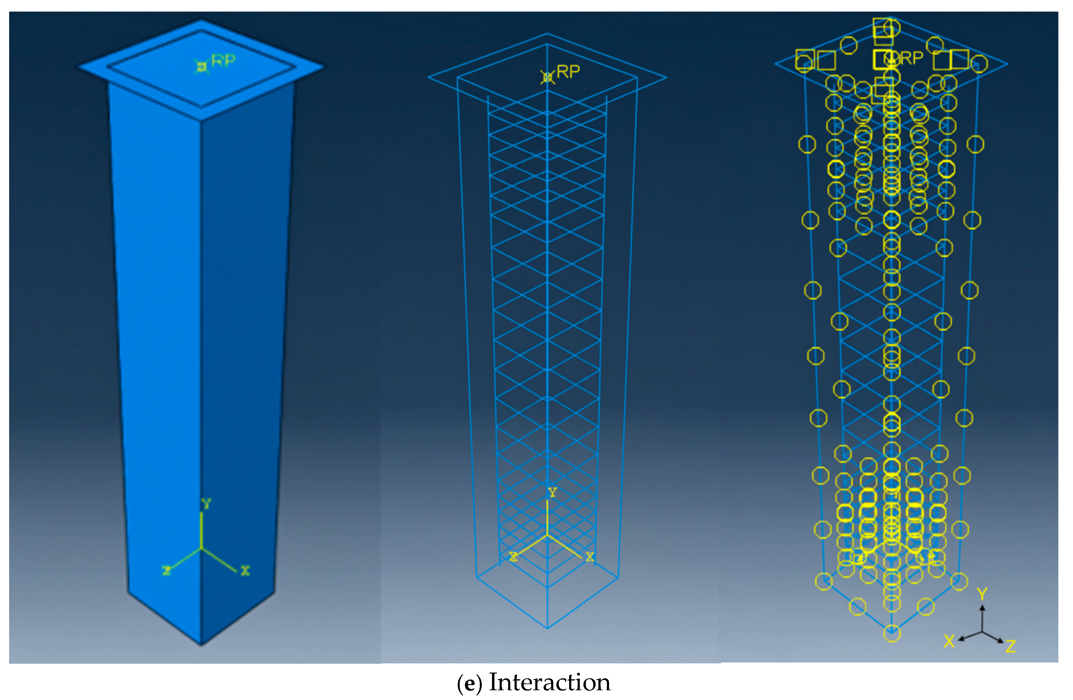 - Raza, A.; El Ouni, M.H.; uz Zaman Khan, Q.; Berradia, M. Structural Assessment of Eccentrically Loaded GFRP Reinforced Circular Concrete Columns: Experiments and Finite Element Analysis. Compos. Struct. 2021, 275, 114528. [Google Scholar] [CrossRef]