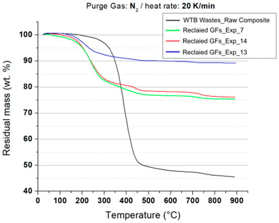 3.2. rGFs and Solvolysis Liquid Wastes Analysis