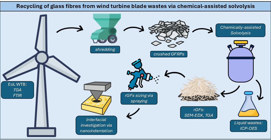 Modestou M, Semitekolos D, Liu T, Podara C, Orfanidis S, Lima AT, Charitidis C. Recycling of Glass Fibers from Wind Turbine Blade Wastes via Chemical-Assisted Solvolysis. Fibers. 2025; 13(12):163. https://doi.org/10.3390/fib13120163