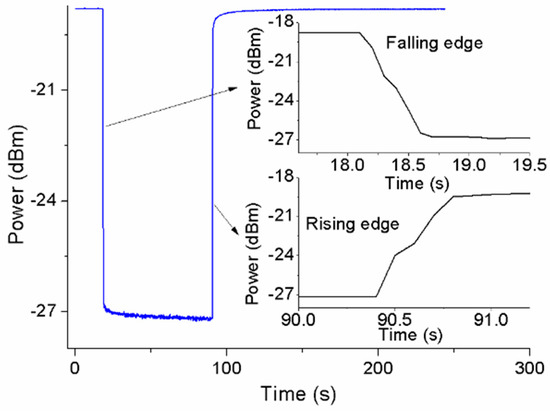 The response rate of the sensor is another important characteristic for the human–robot collaboration. Figure 6 shows the response cycle of the sensor in the time domain. The falling edge and rising edge show that the response time and recovery time of the sensor are 0.4 s and 0.3 s, respectively. Considering the slow mechanical motion of the force-loading probe, the real response time and recovery time should be shorter than those of the experimental results.