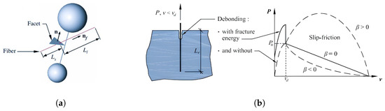 (a) Fibre intersecting with LDPM facet; (b) fibre debonding and the relationship between load and slippage [44].