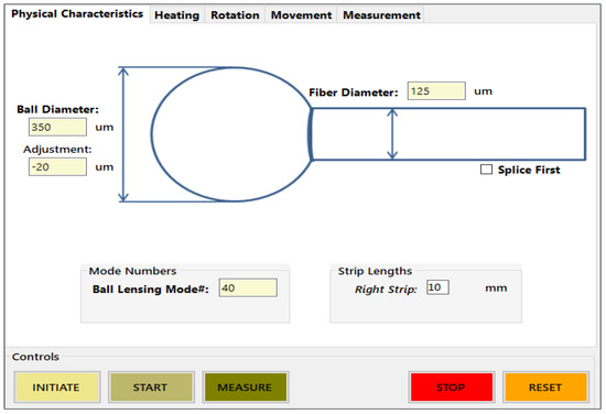A 10 cm long piece of the fiber was placed in a fusion splicing machine (FSM-100 Arc Master Fujikura, Japan), specifically programmed for making a microsphere on the tip of one of the fiber’s ends. A sketch of the machine’s program, utilized for making a microsphere-on-fiber-tip unit, is demonstrated in Figure 3.