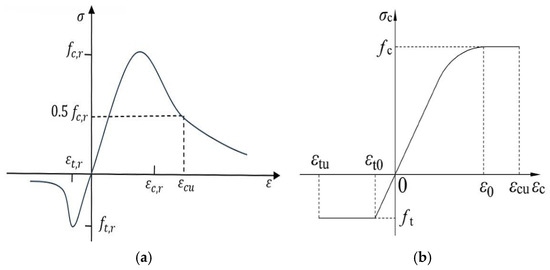 Accordingly, the constitutive stress–strain properties of NSC under uniaxial tension and compression can be obtained through the following equations [49]: