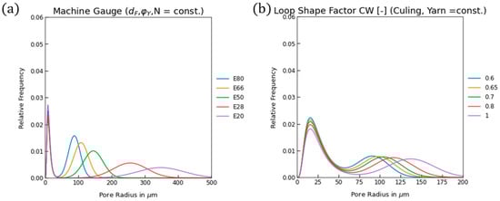 The standard deviation of the pore diameter was set to as this was approximately the relative deviation of the measurements of parameters C and W in previous research. More accurate models for single-jersey fabrics, which include the change in the yarn cross-section at the binding points, exist [50] and could be used to calculate the porosity of the geometric properties of the unit cell. In order to extend the model to other knitting patterns, appropriate geometric models can be used to calculate the free space in the unit cell. By analysing the number of inter-yarn pores per unit cell, the representative inter-yarn pore diameter can be calculated.