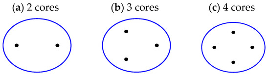 Since the distances between two adjacent cores is the same (see Figure 1b)