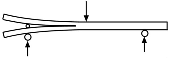 Among mixed-mode loading scenarios, mode I/II has received significant attention in research. The standardized Mixed-Mode Bending (MMB) test method is widely used to generate a combination of modes I and II at the crack tip [4,5]. In this test configuration, mode I is introduced by means of an opening movement as in the DCB test, and mode II is produced by means of the specimen flexure (as in the ENF test) (see Figure 1).