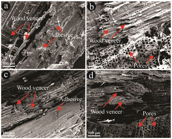 - Setter, C.; Zidanes, U.L.; Novais Miranda, E.H.; Brito, F.M.S.; Mendes, L.M.; Junior, J.B.G. Influence of wood species and adhesive type on the performance of multilaminated plywood. Environ. Sci. Pollut. Res. 2021, 28, 50835–50846. [Google Scholar] [CrossRef]