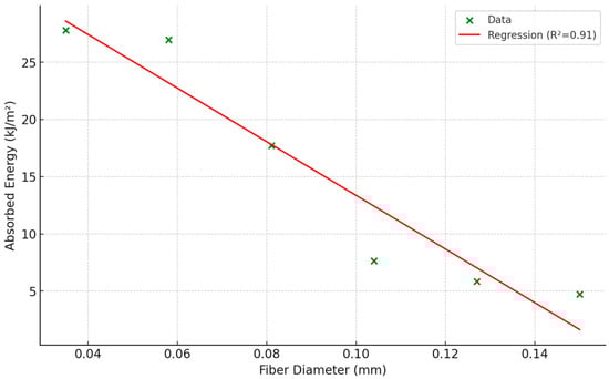 Correlation between fiber diameter and absorbed energy.