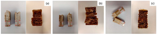 Typical macroscopic aspect of the fractured specimens: (a) EK10; (b) EK20; (c) EK30.