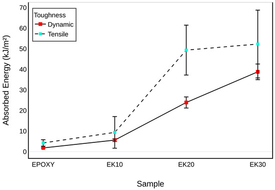70] explored alkali treatment effects and dynamic behavior. Nevertheless, comprehensive evaluation of toughness—particularly absorbed energy under tensile loading—remains scarce.
