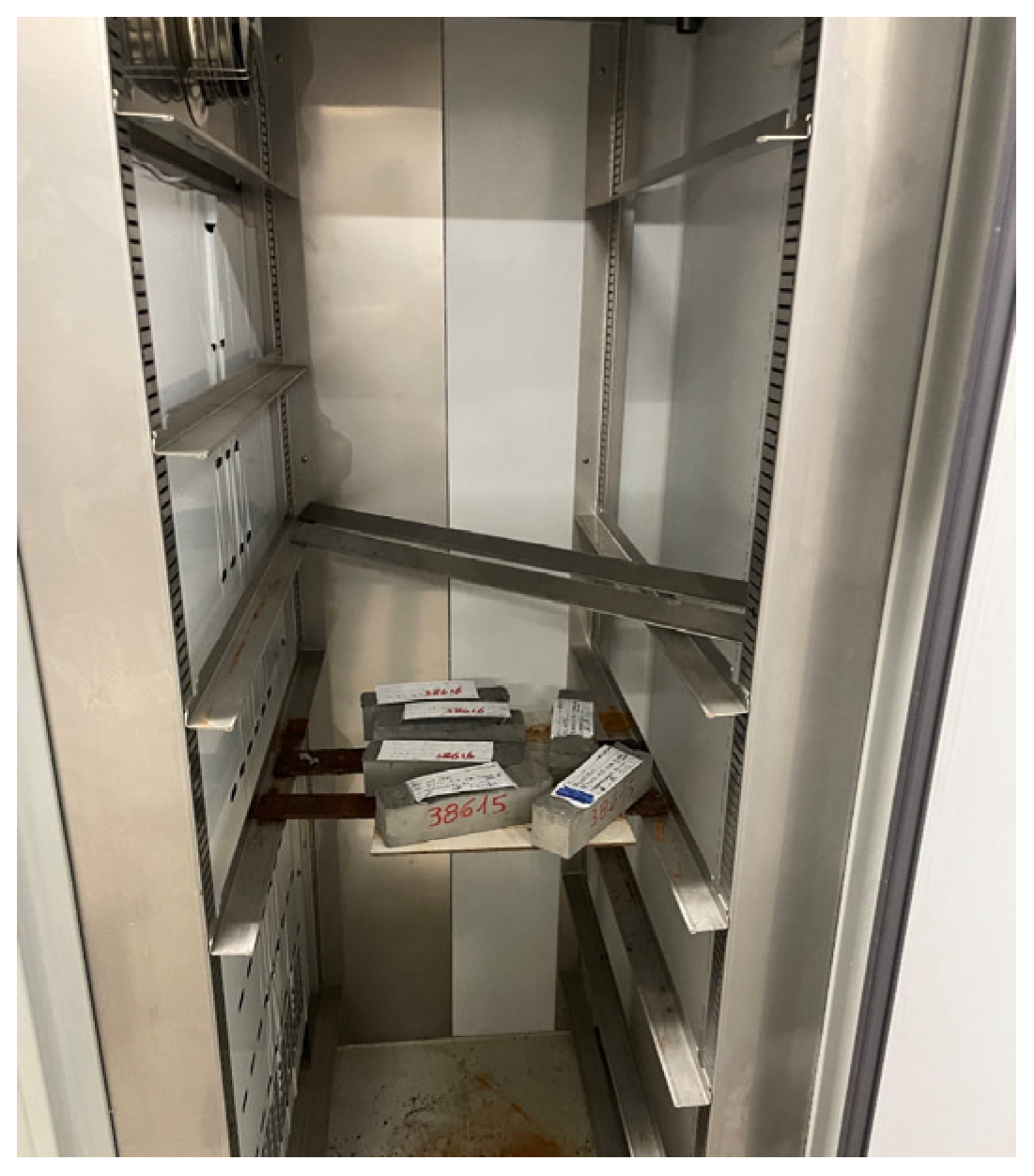 All specimens were cured for 28 days under controlled laboratory conditions before testing (see Figure 3) according to UNI EN 1015-11 [14].