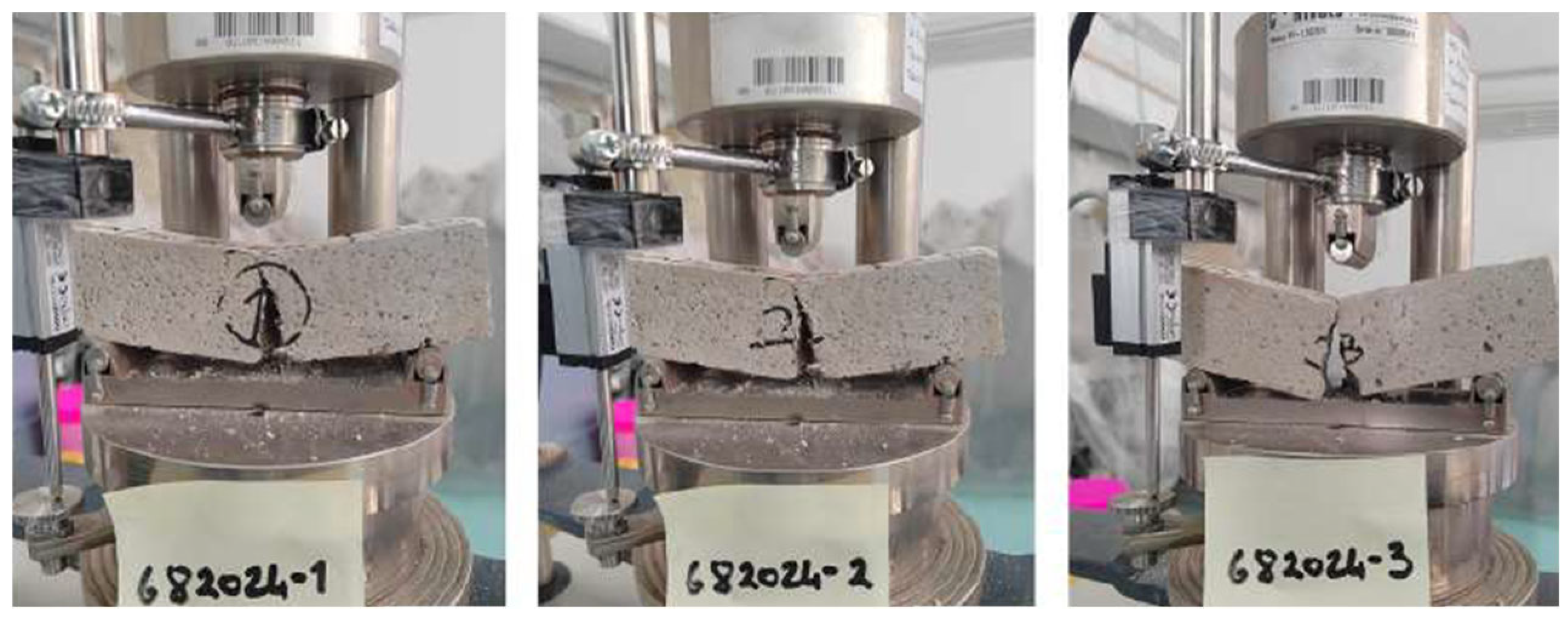 The fractured halves from the bending tests were subsequently used for compressive strength testing, as described in the next section.