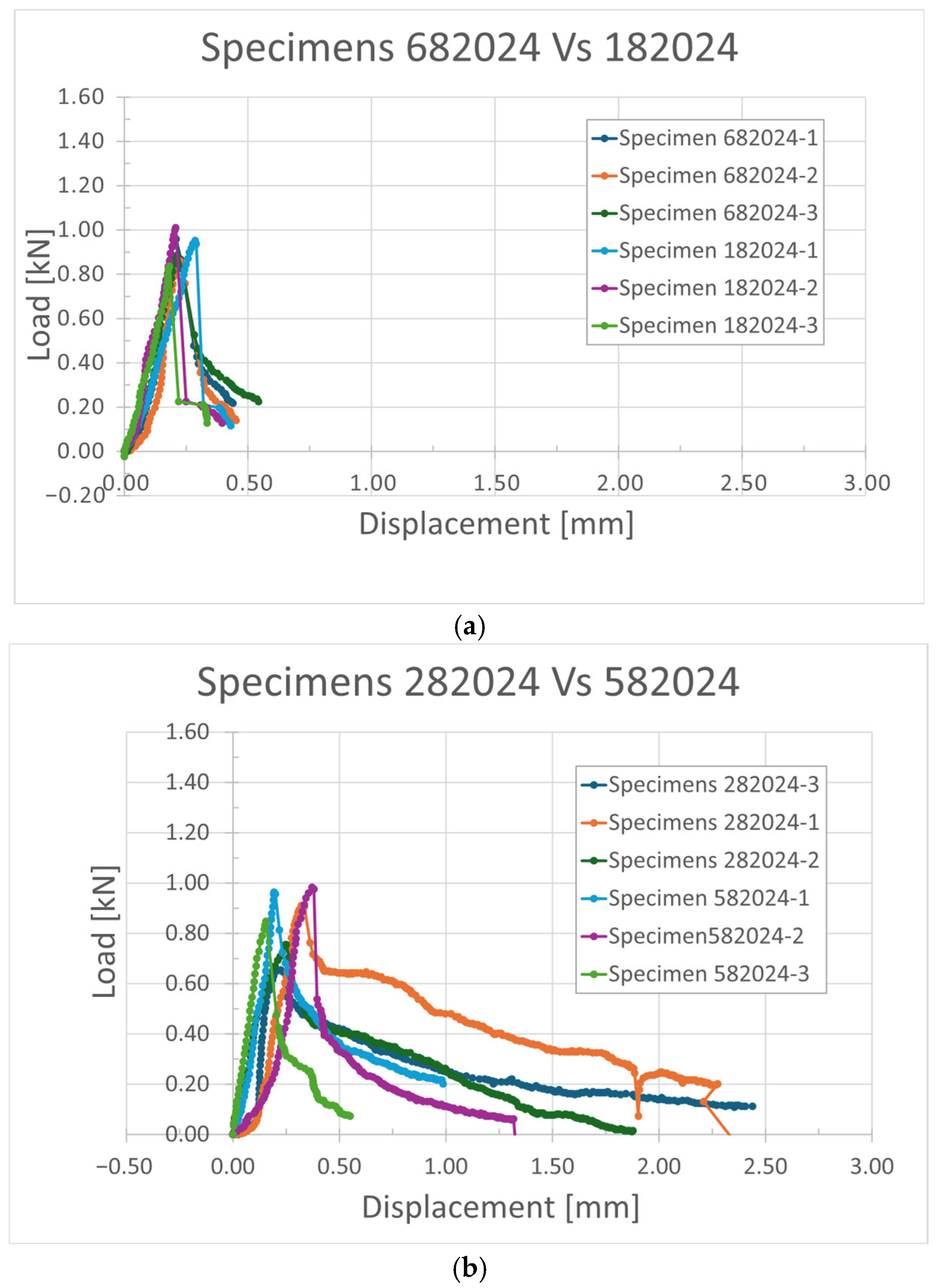 Table 7. (a) Results of compression tests—Matrix 682024 and 182024. (b) Results of compression tests—Matrix 282024 and 582024.