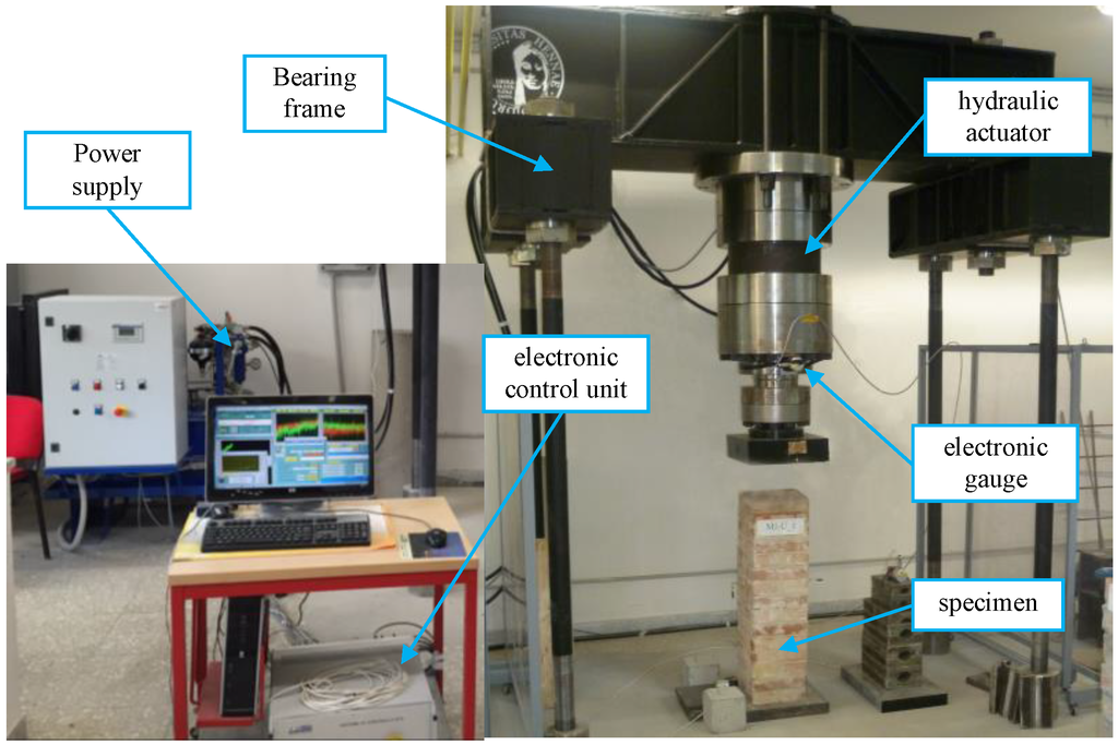 Compression tests on all columns were carried out with a hydraulic actuator with maximum load capacity of 2000 kN, which enables tests in displacement-controlled mode. An electronic control unit, together with a user interface via personal computer, regulated the test type and the equipment.