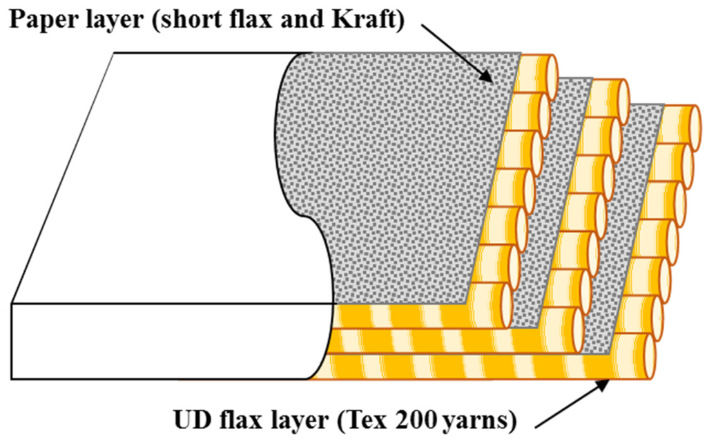 2.1. Fabrication of the Flax-Kraft Paper Layer and UD Flax Layer