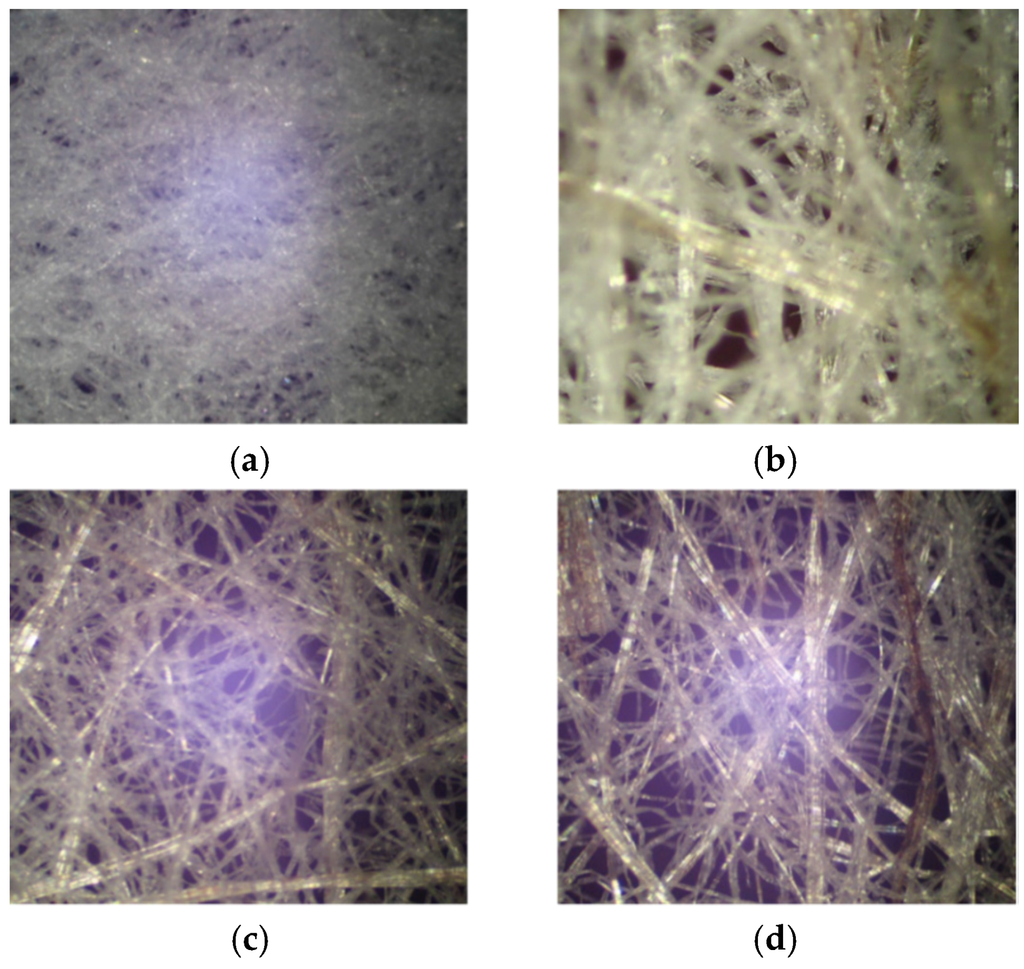 3.1.1. Effect of Short Flax Fibers on the Paper Layer Structure and Thickness