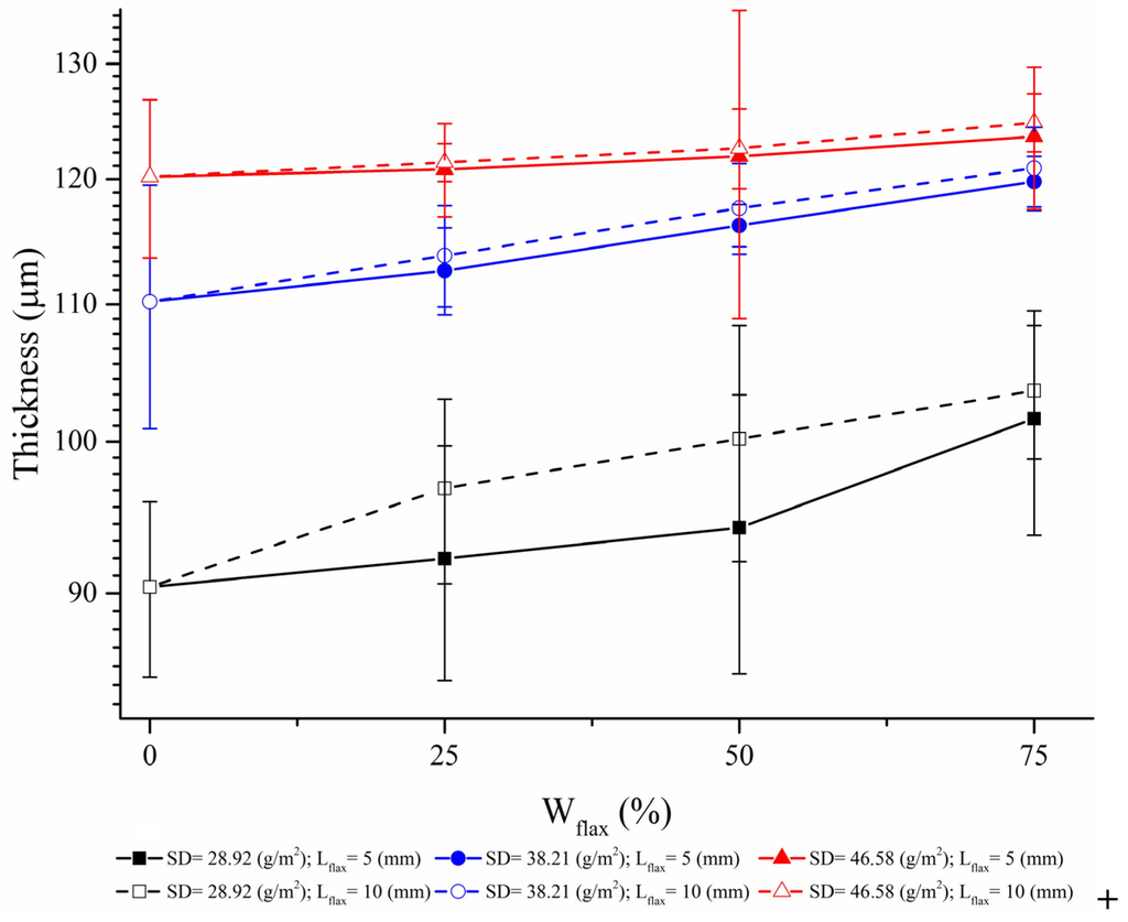 In order to investigate how the flax-Kraft paper layer affects basic mechanical properties, paper layers with a surface density (