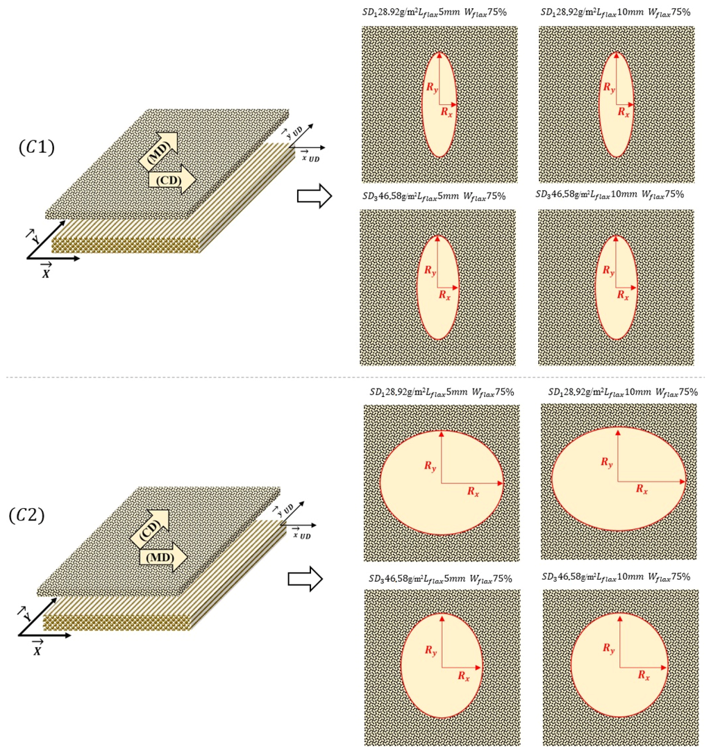 Figure 11), the paper layer’s MD direction is parallel to the flax yarns while in the second case (C2 in