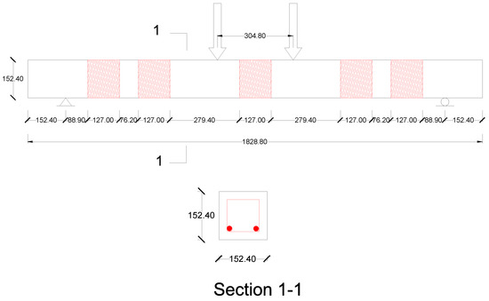 A typical test setup for a repaired reinforced concrete (RC) member (dimensions are in mm).
