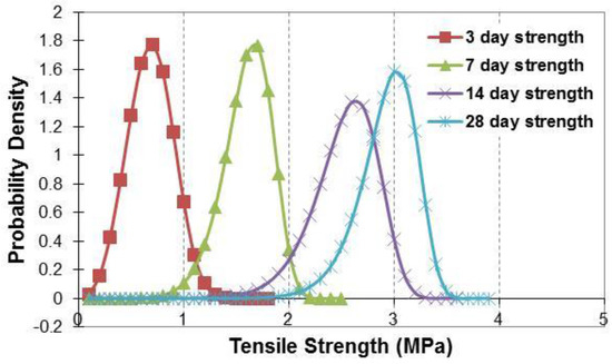 Weibull distribution of concrete tensile strength.