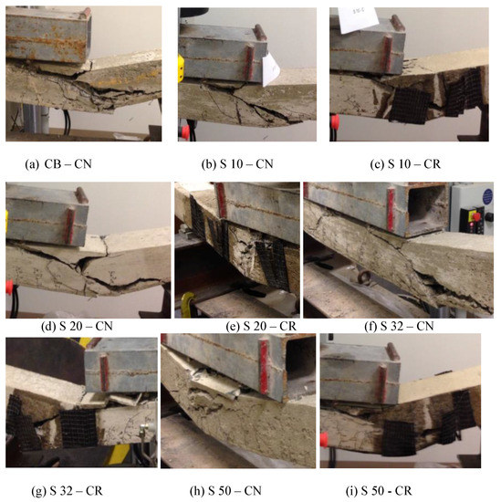 | S 10–CR | Deboning of CFRP, rupture of first U in the clamped side, splitting crack on the clamped side, and crushing of concrete. |