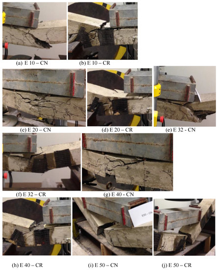 | E 40–CN | Two splitting cracks; one on each side, and crushing in top concrete. |